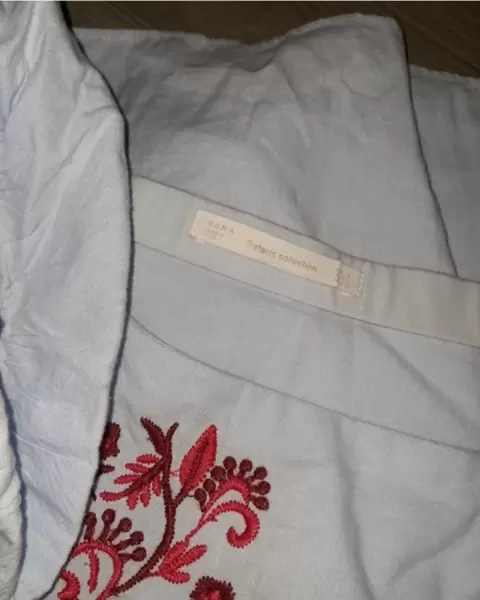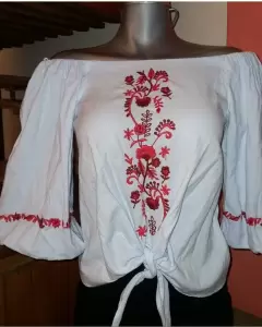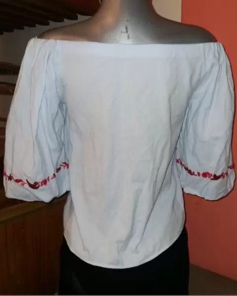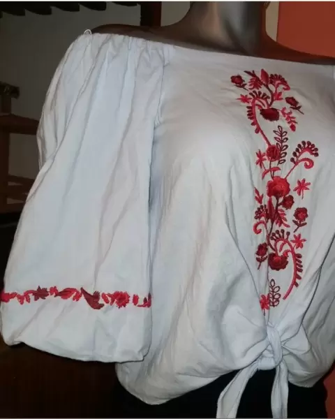Hermosa blusa Zara trafaluc, con detalles bordados en rojo, hombros descubiertos y amarre en cintura.
