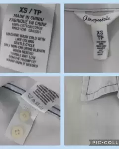 Bella blusa manga larga o puedes usarla en 3/4 de manga. Tela 100% algodón. Talla XS no tiene strech y queda tambien a S. Trae 2 botones de repuesto uno para manga y otro para el frente. Tiene una diminuta manchita cerca del cuello (ver ultima foto).Axila a axila: 43 cmHombros: 37 cmLargo delantero: 61 cmLargo trasero: 68 cm