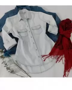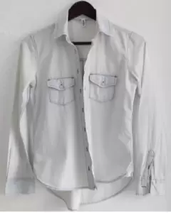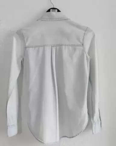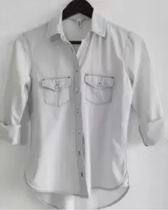 Blusa/camisa tipo denim. Bella blusa manga larga o puedes usarla en 3/4 de manga. Tela 100% algodón. Talla XS no tiene strech y queda tambien a S. Trae 2 botones de repuesto uno para manga y otro para el frente. Tiene una diminuta manchita cerca del cuello (ver ultima foto).Axila a axila: 43 cmHombros: 37 cmLargo delantero: 61 cmLargo trasero: 68 cm