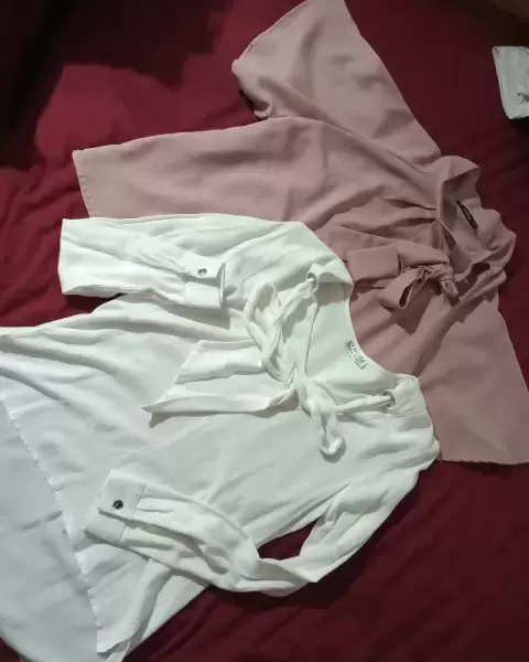 Blusas 2x1. 2x1 Blusitas blanca y rosa palo, con moño al frente, lucen bonita la blanca es de algodón, la otra no es algodón pero es fresca