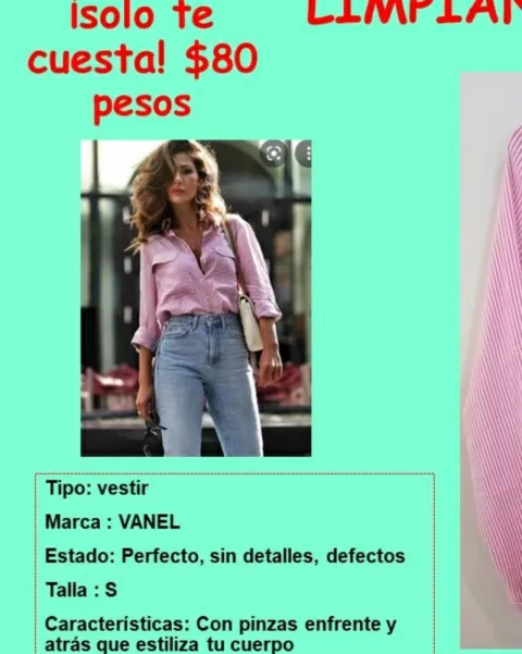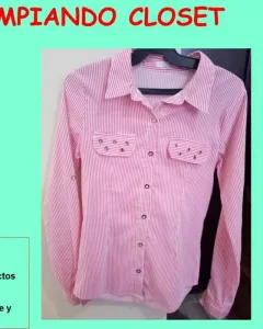 Excelente blusa, en buen estado, sin detalles y económicas. Contactarme tengo más ropa en buen estado y súper barata.Cuenta con pinzas que estila tu cuerpo.