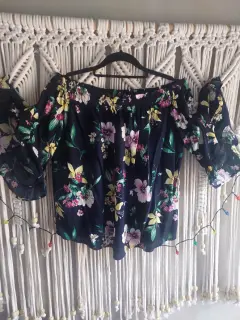 Blusas muy lindas. 2 blusas muy lindas de hombros descubiertos, las dos se usaron solo una vez y son marca bershka y cuidado con el perro, muy frescas para el calor.Vendo las dos por un solo precio
