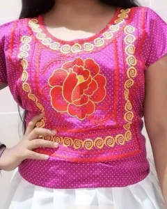 Blusas con bordados enfrente y olan es color blanco