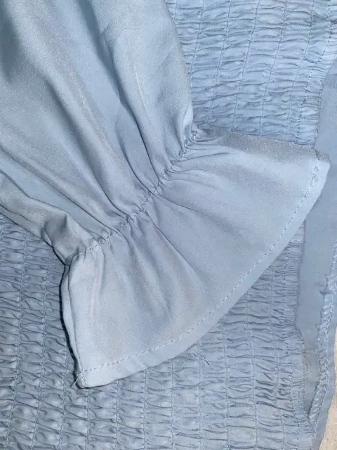 Blusita Azul ☀️. Hola chicas lindas ,les traigo esta lindisima blusa azul cielo ,es talla S/M no trae copa y el detalle que trae de resorte en el abdomen se ve más que lindo,es de manga larga y trae detalle en la muñeca de un resorte💕
