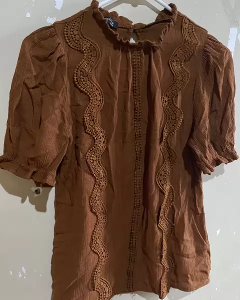 Blusita cafecita 🤎. Blusita philosophy hermosa!! Talla s , con detalles de encaje súper lindos , elegancia por donde la veas pero con una tela tan cómoda que puedes usar a donde sea