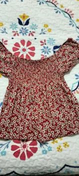 Es una blusa en excelente estado, es al hombro o la puedes subir al hombro y se ve increíble, la tela es súper fresca, está hermosa.Es talla M pero le queda a una L.