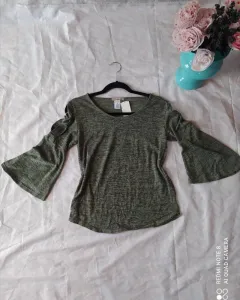 Blusita casual verde olivo. Blusita casual con mangas abiertas y anchas, la tela es ligera y suave dice talla M viene un poco pequeña queda bien desde talla S no tiene detalles es nueva sin etiqueta