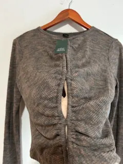 Blusita súper bonita Es nueva con etiqueta y sin detalles La tela está Tiene aperturas a lo largo del frente Estilo sexy Talla L Precio marcado de 18 dólares Aprovecha súper precio