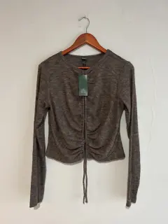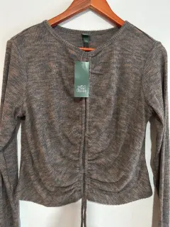 Blusita corta jaspeada. Blusita súper bonita Es nueva con etiqueta y sin detalles La tela está Tiene aperturas a lo largo del frente Estilo sexy Talla L Precio marcado de 18 dólares Aprovecha súper precio
