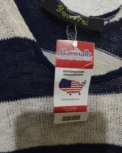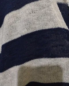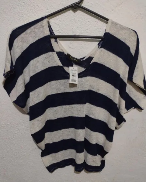 Bonita blusa tipo tejida en la segunda foto se puede apreciar con más presión, es color azul con rayas blancas, esta prenda está sin uso