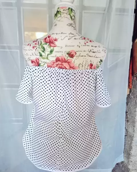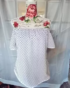 Blusita escotada de hombros color blanco con puntitos ideal para la primavera