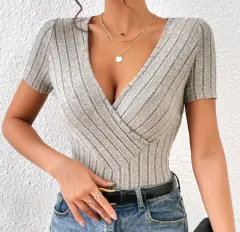 Blusita escote V. Blusa Shein de cuello V, tejido de canalé color gris talla XS.De hombro a hombro 33.5cmLargo 57cm