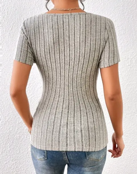 Blusa Shein de cuello V, tejido de canalé color gris talla XS.De hombro a hombro 33.5cmLargo 57cm