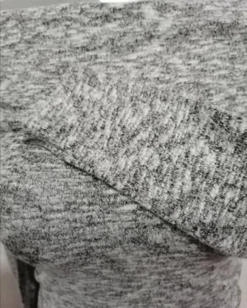 Blusita jaspeada hombros descubiertos. Hermosa blusita hombros descubiertos gris jaspeada, manga larga, tela agradable al tacto y a la piel, semicalientita. 64% rayon, 30%poliester, 6% elastano.Medidas largo 50 cm, axila a axila 37cm, laego manga 55cm.
