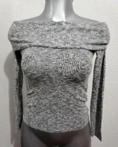 Hermosa blusita hombros descubiertos gris jaspeada, manga larga, tela agradable al tacto y a la piel, semicalientita. 64% rayon, 30%poliester, 6% elastano.Medidas largo 50 cm, axila a axila 37cm, laego manga 55cm.