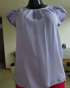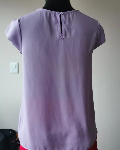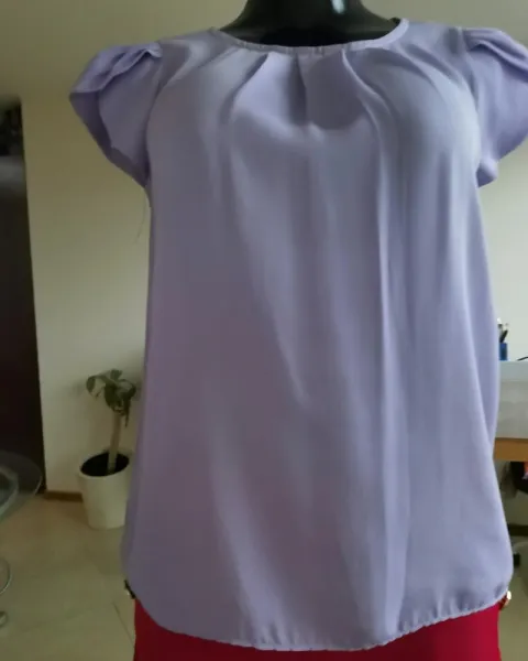 Blusita lila de manga corta. Blusa de manga corta tipo sombrilla, es corte recto, color lila, cuello redondo