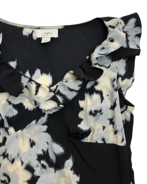 Blusita LOFT flowers blue. Blusa Loft con flores rayadas en tonos blancos y azules, está muy linda tiene olanes en cuello y hombros.