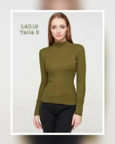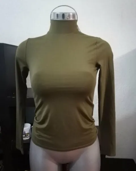 Hermosa playera manga larga, cuello alto, verde militar, super bonita, tela super agradable. 62%poliester, 33%rayon, 5%spandex. Medidas largo 56.5cm, axila a axila 34 cm, hombro a hombro 31cm, largo Manga 58cm, largo cuello 5cm