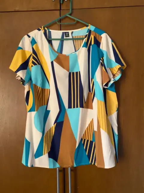 Blusita multicolor 2xl. Linda blusita de colores con patrón de cuadros en talla 2xl de SHEIN tela súper fresca y colores súper bonitos combina con todo.