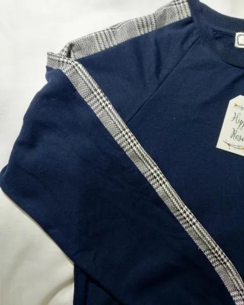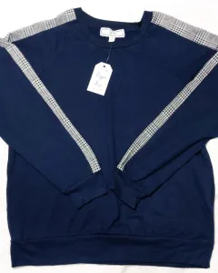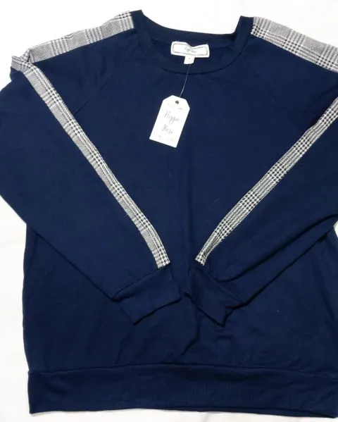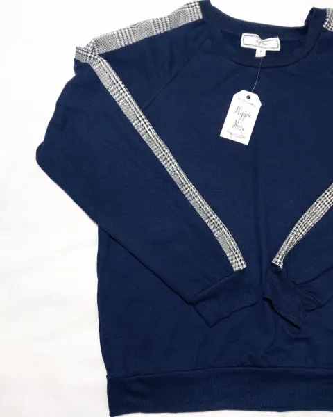 Linda blusita tipo sudadera ligera color.azul marino con detalle.de.lineas en las mangas nuevo.con etiqueta talla m