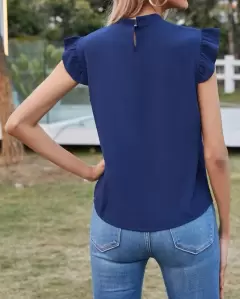 Hermosa blusa manga corta, azul marino especial para estos días de calor, talla M🥰