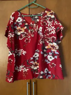 Blusita vino con flores 3xl. Linda blusita de SHEIN talla 3xl, la tela es súper fresca ideal para esta temporada primaveral y el color combina con todo, viene amplia da hasta una talla 40 mexicana.