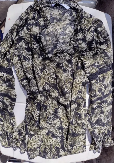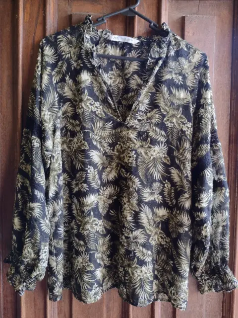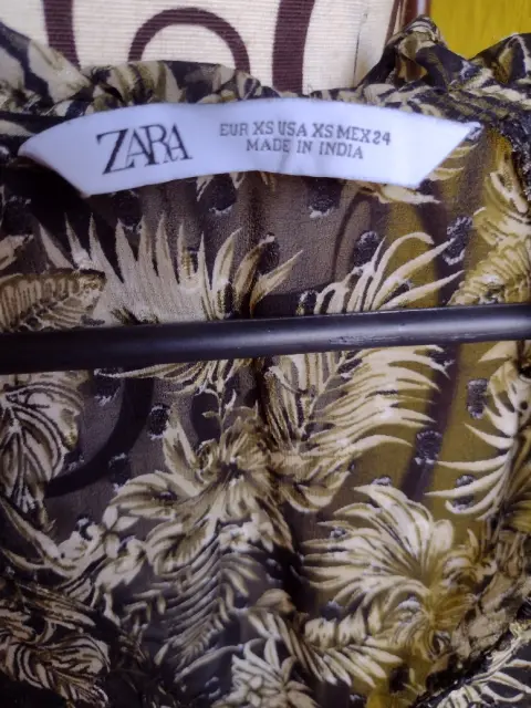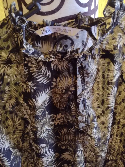 Blusita ZARA estilo Boho. Es talla xs pero el estilo es holgado así que sin problema queda hasta un talla LEs súper fresca la tela y luce muy bonita sin detalles, sus mangas lucen muy bonitas y en el cuello cuenta con un botón por la parte de adentro por si quieres usarlo un poco más cerrada o con el cuellito abiertoEstá súper bonita