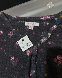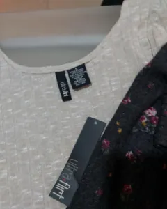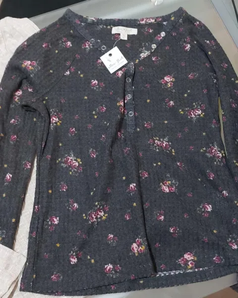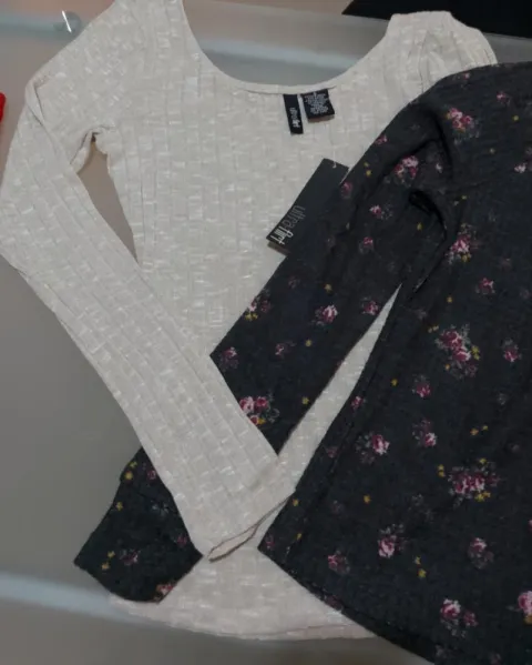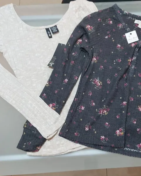Blusitas ligeras.manga larga talla s.nuevas con etiqueta color beige y gris con florecitas talla s 2x1
