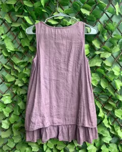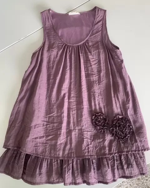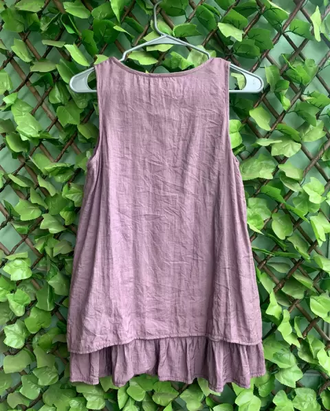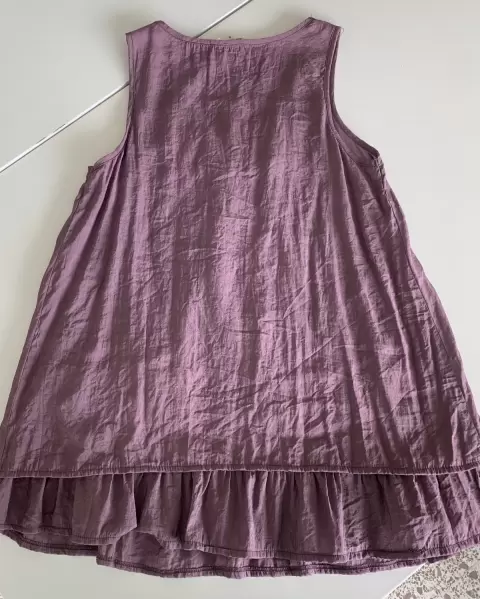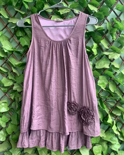 Blusón con un puesta, únicamente en la parte de abajo tiene una pequeña abertura, fresco y cómodo con dos detalles de flor en la parte de abajo