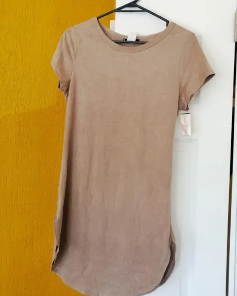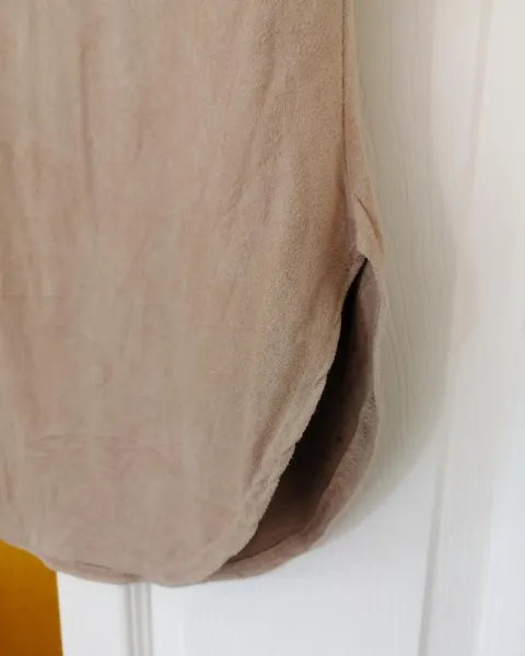 La tela super padre como tipo gamuza. Es L pero viene reducido y ajusta al cuerpo muy bonito.
