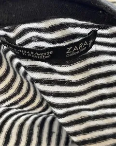 Blusón a rayas Zara. Blusón a rayas blanco con negro, talla: S, medidas: 53 cm de hombros, 58 cm de axila y 67 cm de largo. Tiene algunos hoyitos. Manga 3/4.