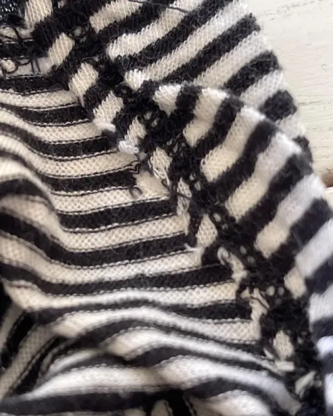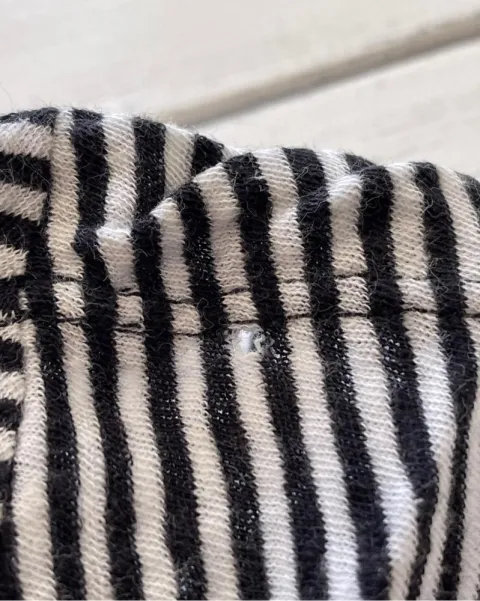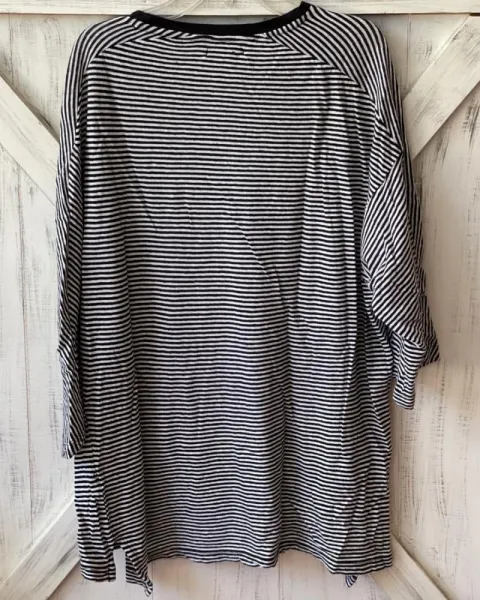 Blusón a rayas blanco con negro, talla: S, medidas: 53 cm de hombros, 58 cm de axila y 67 cm de largo. Tiene algunos hoyitos. Manga 3/4.