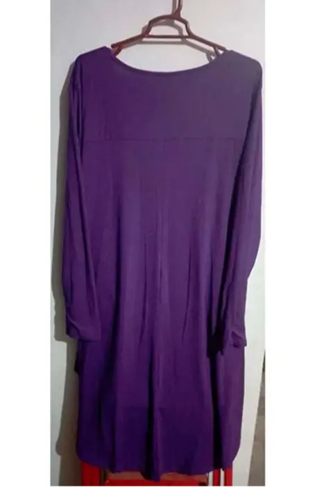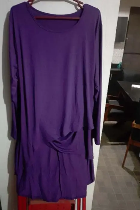Blusón de cuello redondo, bajo asimétrico, color morado, de tela de camiseta, 113-119 pecho, 98-104 cintura, 123-129 cadera, precio original 595Envío a la brevedadAcepto ofertas