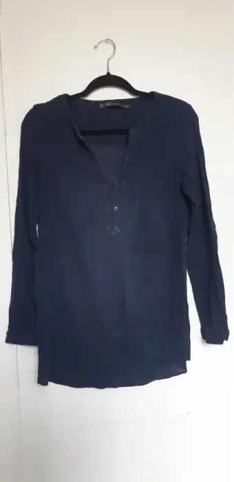 Blusa larga color azul marino, es marca ZARA, talla S y esta en muy buenas condiciones. Puede usarse con cinturon.