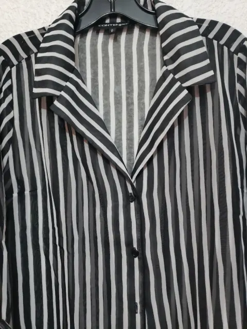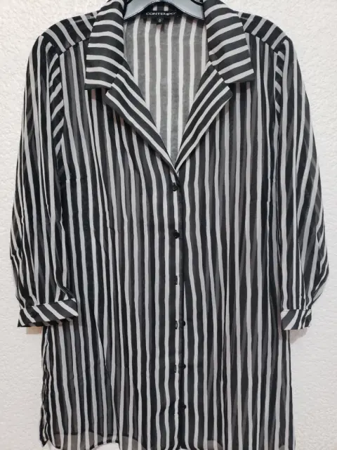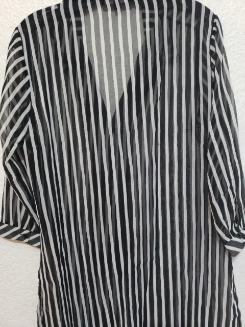 Bluson camisero, transparente, manga 3/4, botones al frente, bicolor, talla G, 74cm de largo, 50 cm de axila a axila