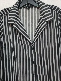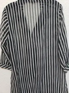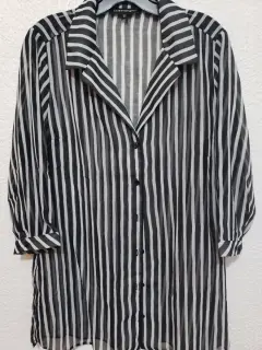 BLUSON CAMISERO. Bluson camisero, transparente, manga 3/4, botones al frente, bicolor, talla G, 74cm de largo, 50 cm de axila a axila