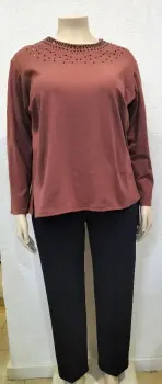 Blusón con brillos al frente color rosa viejo. Blusón con brillos al frente manga larga color rosa viejoTela poliéster con algodón Talla 44