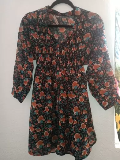 Este blusón es muy elegante, es tela mesh, pero la talla viene reducida puesto a qué es L y les queda a las talla M. No tiene detalles muy fresca.