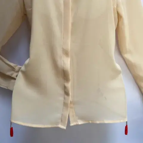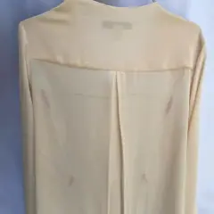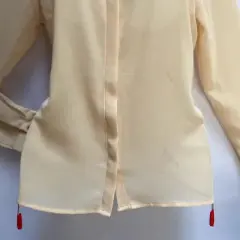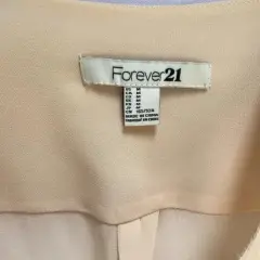 Blusón en color nude en tela de gasa. Blusón en color nude en tela de gasa semipermanente. Escote redondo, corte canesú en los hombros y estoperoles redondos. Botones ocultos en la parte de enfrente, sólo uno visible en la parte superior en color dorado metálico. Manga larga, puños y aletilla con botón. Tablón invertido en la parte de la espalda y canesú. Talla: M (30-32) Puede quedar hasta una talla L. Marca: FOREVER 21.