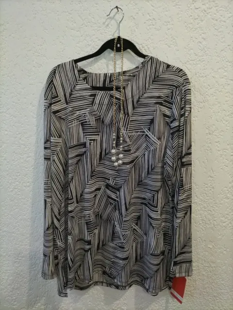 Blusón estampado. Blusón estampado manga larga con collar incluidoTela poliésterTalla 44