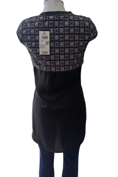 BLUSON FORMAL. BLUSON FORMALCUELLO REDONDOESTANPADO DE ENCAJE A CUADROSCOLOR NEGROMAS LARGA DE LA PARTE DE ATRASES UNA SOLA PIEZA, VIENE PEGADO LAS DOS PARTES, SIMULA CAMISAENVIO INMEDIATO