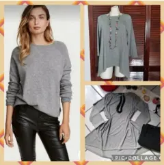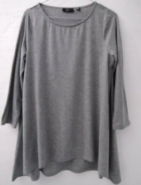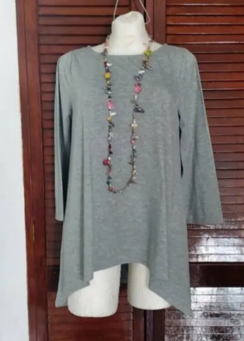 Luce padrísimo con Jeans, tono gris, queda suelto. Talla M, con mucho strech. Tela rayón en un 95%. Te dejo medidas: hombros: 34 cm, de axila a axila: 49 cm, largo: 72 cm y 64 cm (queda 8 cm más largo de la parte de atrás).Nuevo sin etiqueta.