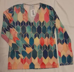 Blusón multicolor. Blusón ligero de algodón, escote en "v", manga larga, holgado, super cómodo y fresco.