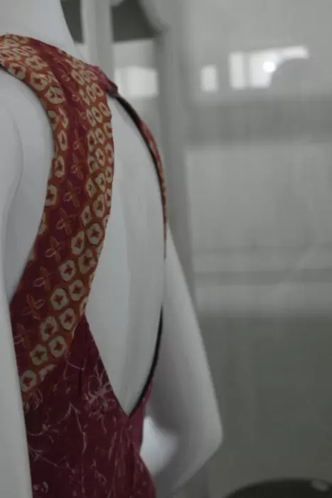 blusón rojo floral. esta hermoso el detalle de la espalda descubierta lo hace ver muy lindo.