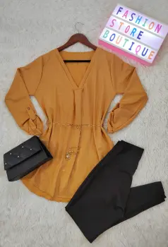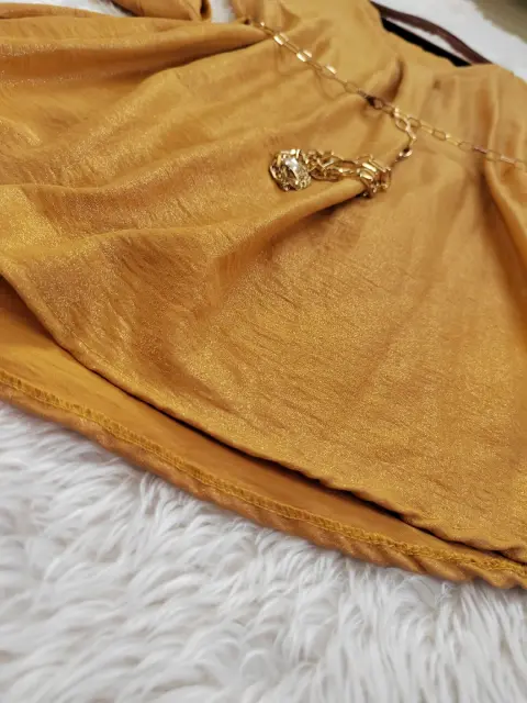 Bluson Satinado Mostaza. Hermoso BlusonTela rígida pero satinadaIncluye una cadenita para formar la cinturaSimplemente hermosa nueva sin detalles