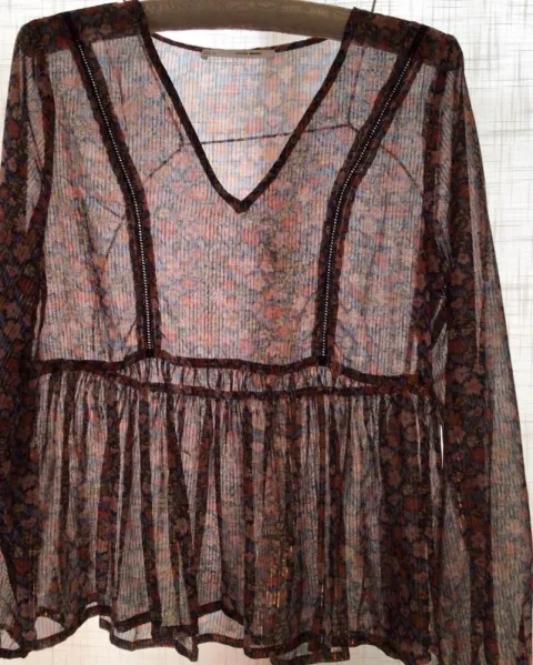 Blusón Sfera. Blusón floral, transparente sin forro tipo boho.Talla L, sin ningún detalle esta semi nueva.