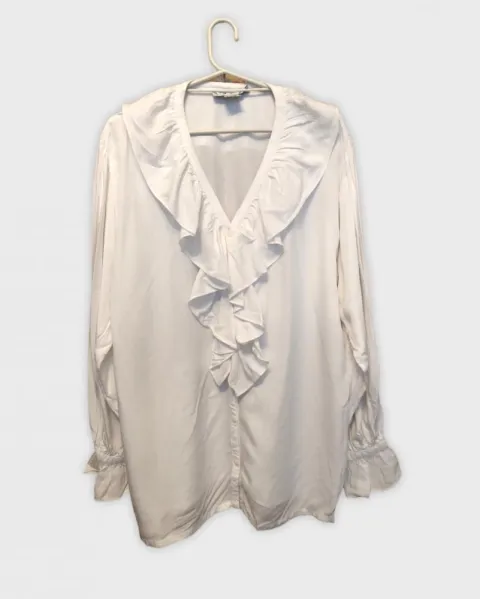 Bluson waves New York. Blusón con lindos olanes abierta al frente color blanco.