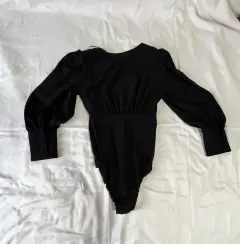 Boddy. Boddy negro, escote en V, mangas tipo medieval,