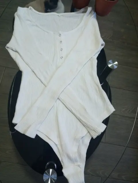 Body de canalé color blancoTalla GQueda a media también, estiraEs de tela suave y fresca