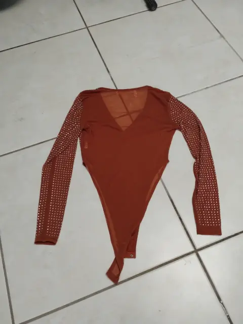 body. Hermoso body colos chedron con aplicación de brillo ,manga larga cuello uv tela transparente .